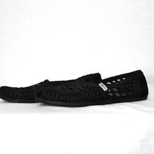 TOMS Women's Classic Black Satin Woven Slip Ons Size 8.5 Preloved