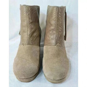 TOMS Women's Desert Wedge High Taupe Suede Croc Embossed Ankle Bootie Size 8