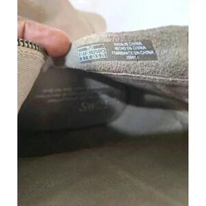 Elevate your casual style with these Tom's Desert Wedge High Taupe Suede Croc Embossed Ankle Booties. The almond toe shape and animal print pattern add a touch of uniqueness to the overall design. This pair of boots features a zip closure and a wedge heel style, perfect for a casual occasion.