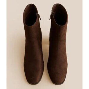TOMS Womens Evelyn Stacked Block Heel Round Toe Booties Oak Brown Size 11M NIB
