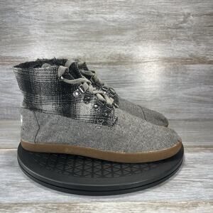 TOMS Womens Highland Ankle Gray Plaid Foldover Lace Up Wool Blend Boots Size 9.5
