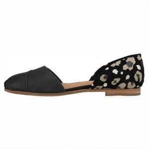 TOMS Women’s Jutti D’Orsay Loafer Flat - Black Leather / Abstract Leopard