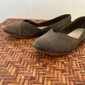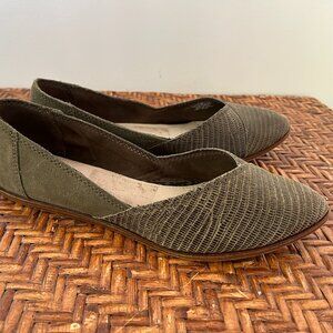 TOMS Womens Jutti-Tarmac Pointed Flats Size 8 Olive Suede Chevron Embossed Shoes