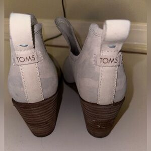 These Toms ankle booties in a stylish gray color feature a convenient slip-on design with elastic side panels for effortless wear. The low stacked heel and rounded toe provide a minimalist and versatile look, ideal for any occasion. The soft suede texture adds a touch of elegance to your ensemble.