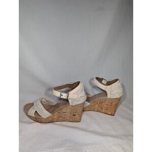 TOMS Womens Lace Strappy Wedge Sandals Sz 10 4" Heel boho Beach Wedding Bride