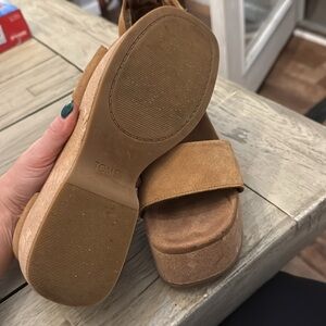 Elevate your ensemble effortlessly with TOMS Laila platform sandal, boasting a luxe suede upper and a secure ankle strap closure for added stability. Designed for both style and sustainability, its OrthoLite Eco X40 Hybrid footbed incorporates eco-friendly materials, while its cork-wrapped wedge heel delivers chic sophistication with every step.. Soft suede upperClosed heel Adjustable ankle strapHigh-rebound comfort OrthoLite Eco X40 Hybrid insoles made with 32% eco content Cork-wrapped midsole3 1/2 inch heelRubber outsole