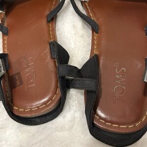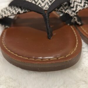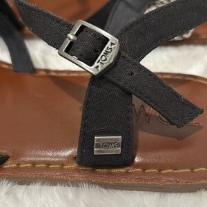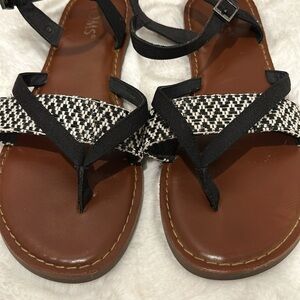 TOMS Women’s Lexi Strappy Ankle Flats Blk/Wht. Geometric Canvas Embroidery 7.5