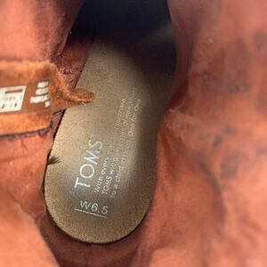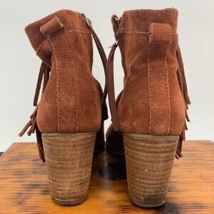 TOMS Women's Lunata Cognac Brown Suede Fringe Tassel Heel Booties Size 6.5