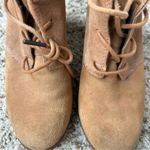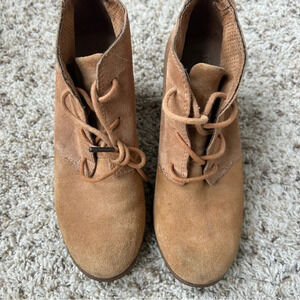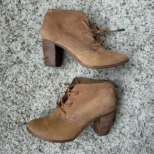 TOMS Womens Lunata Lace-Up Tan Suede Bootie Stacked Heel Size 7