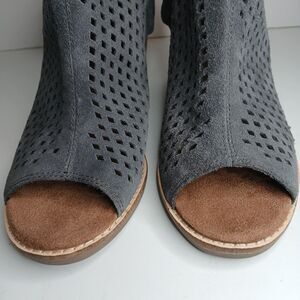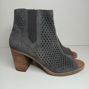 TOMS peep toe perforated ankle boots suede. Side zippers and stacked block heel. Gently used and in good condition. Smoke-free and pet-free home.