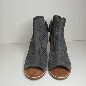TOMS Women's Majorca Boots Size 8.5 Block Heel Open Toe Grey Suede Boho Shoes