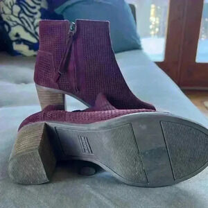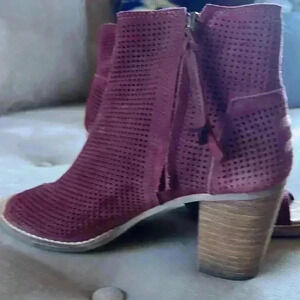 TOMS Women's Majorca Peep Toe Perforated Suede 7W Burgundy Ankle Boot