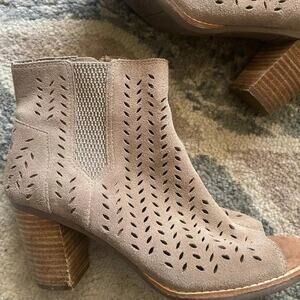 TOMS Women’s Majorca Peep Toe Stucco Suede Perforated Booties Size 6.5