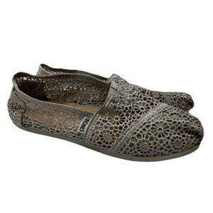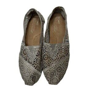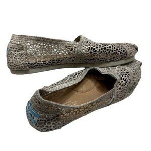 TOMS Women's Open Lace Crochet Cream/Tan Slip On Espadrilles Shoes Flats sz 7.5
