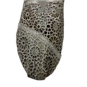 TOMS Women's Open Lace Crochet Cream/Tan Slip On Espadrilles Shoes Flats in size 7.5.