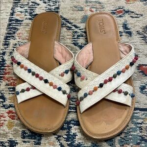 Chic TOMS sandals with colorful beaded accents. Comfortable and stylish for everyday wear. Worn condition. See photos. Priced to sell!