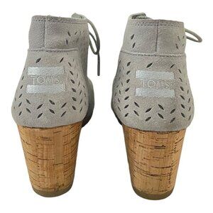 TOMS Womens Size 10 Desert Wedge Drizzle Grey Suede Perforated Leaf Bootie