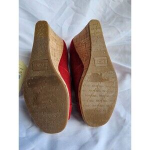 TOMS Women's Size 5 RED Classic Cork Wedge Heel Shoes Peep Toe Sandal NWOB