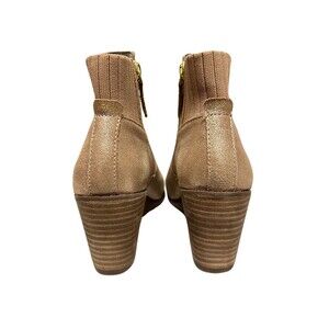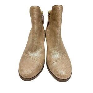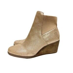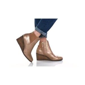 TOMS Womens Size 7.5 Rose Gold Shimmer Metallic Leather Sadie Wedge Bootie EUC