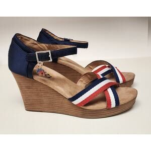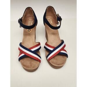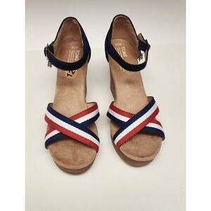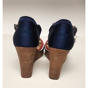 TOMS Strappy Wedge Election Charms Sandals Women's size 12M Multicolor Red, White & Blue