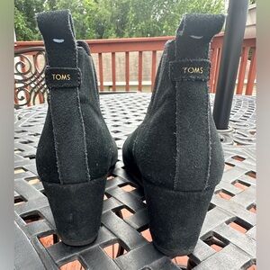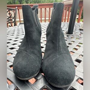 A winter-ready wedge boot for long workdaysa"and long nights out, too. Suede upper. Heel pull tab. Dual gore closure. Canvas lining. Suede wrap heel. Approx. 2 A3/4". Rubber outsole. Black Suede Women's Kelsey Booties Gift wrap eligible. #TOMS