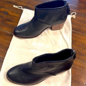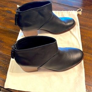 TOMS Women's Sz 9W Black Leather Heeled Zip Back Tassel Ankle Booties