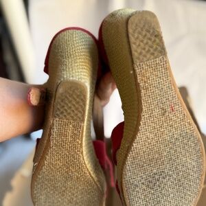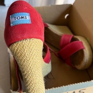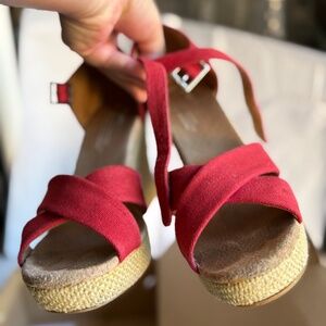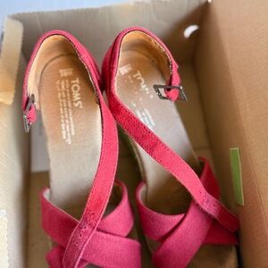Tom’s brand red canvas strappy wedge high heel women’s sandals, Size US Size 8.5.