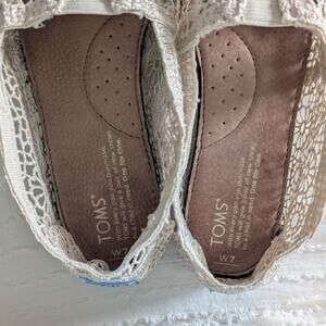 Cute, casual lacey crochet TOMS flats. Off white color.