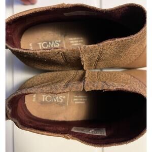 TOMS Women’s size 10 Leilani Ankle Booties Brown Suede Leather Cheetah Slip On. In good pre owned used condition, some signs of wear/dirt on insoles and on toe area. Please see pictures for condition.