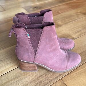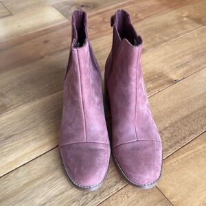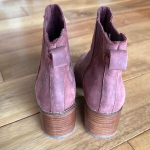 In near new condition. Color is called burnt henna. Suede upper with elastic side panels. Boots are 7” tall including a 2.5” heel.