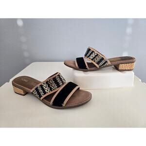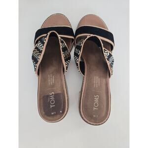 TOMS Woven Block Heel Sandals | Size 7 | Boho Chic Slide Mules Neutral Black