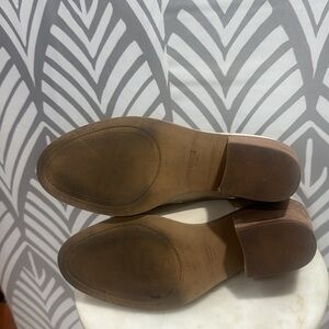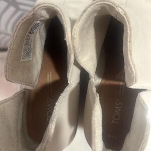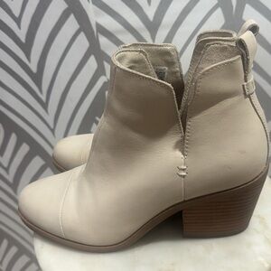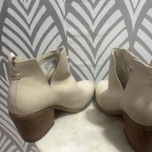 TOMS Everly nubuck beige ankle bootie. Stacked heel measures approximately 3 inches. Cut outs. Size 8.5. Open to offers