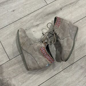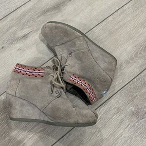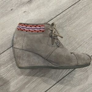 TOMS grey suede embroidered ankle booties size 5.5