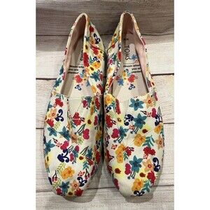 TOMS womens Alpargata loafers shoes, Natural Slip On Size 9 Floral Design