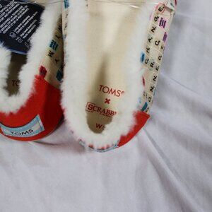 TOMS, Scrabble, Word Game, Cozy Slippers, Faux Fur Lined, Limited Edition, Casual Shoes, Indoor Outdoor, Comfort Footwear, Collectible Collab