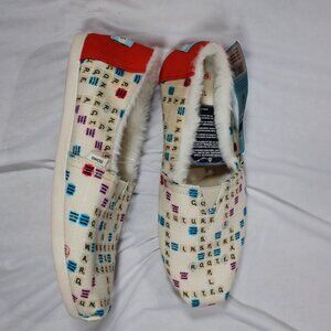 TOMS x Scrabble Limited Edition Faux Fur Lined Slippers Size 5 NWT
