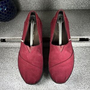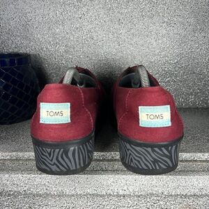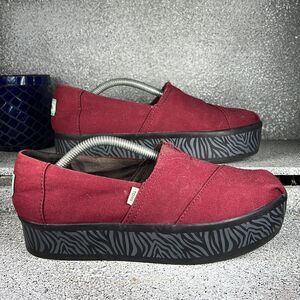 TOMS ALPARGATA BOARDWALK CABERNET CANVAS ZEBRA STRIPES Platform 6.5