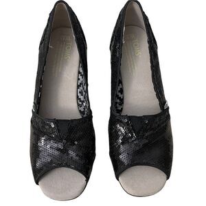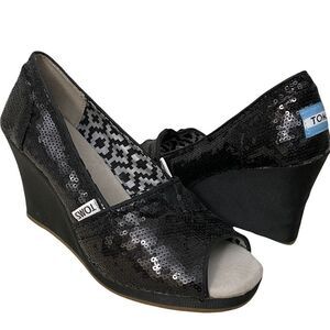 TOMS BLACK SEQUIN WEDGE 3” heel SLIP ON SHOES size women’s 6.5