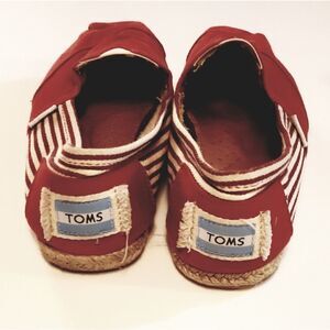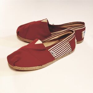 Very good used condition. Fun special edition red and cream TOMS size 7.5 women's