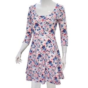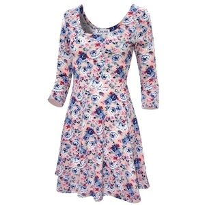 TOMSWARE Women Pink Floral Print 3/4 Sleeve Scoop Neck fit and Flare Dress M
