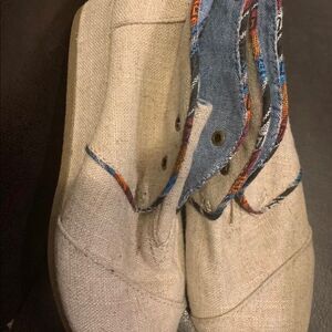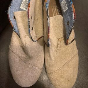 TOMS Womens Size 4 Linen Wedge Lace Up Ankle Boots Shoes Heel Bootie Jute Desert Please note that it’s missing lace. Excellent condition.
