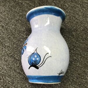 TONALA Mexican Pottery Vase Signed Blue Flower Bird Hand painted 6.5” vintage