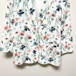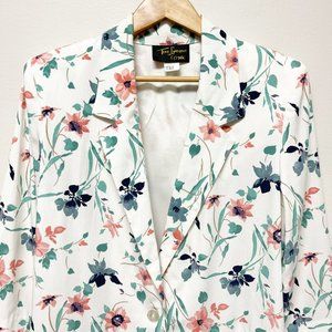 TONI GARMENT Vintage Spring Floral Long Line One Button Blazer White Pin…