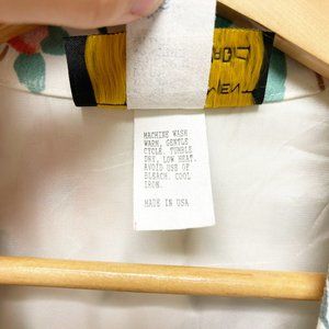 Toni Garment For CC Magic Vintage Spring floral long line school boy blazer. One button. Has some faint yellowing and a few small stains throughout-- please see all photos. Overall, good vintage condition. Size M.