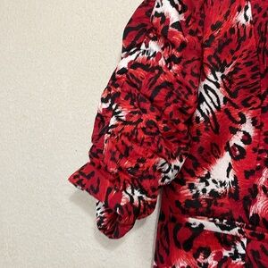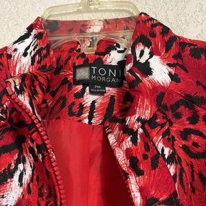 TONI MORGAN red/white/black animal print blazer,front zipper in great condition Size PM