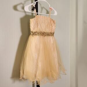 TONI NWOT Sleeveless Pale Yellow Girls Lace Dress with Tulle, Size 8