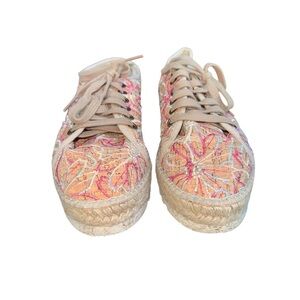 TONI PONS Embroidered Floral Espadrille Sneakers Beige Pink EU Size 39 US Size 8