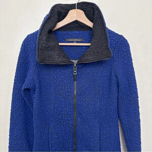 TONIA DEBELLIS Womens Small Textured Stretch Full Zip Ruched Collar Jacket