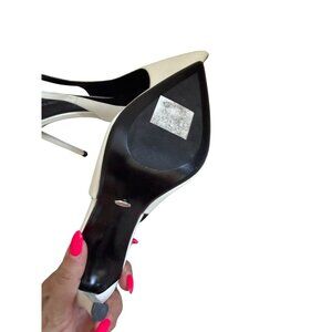 Elevate your style with TONY BIANCO white leather slingback heels, perfect for any occasion. Featuring a sleek design and comfortable fit, these heels are a must-have addition to your wardrobe. Great pre owned condition with some light scratches to upper only from wear as shown.