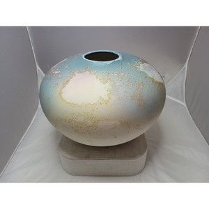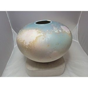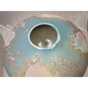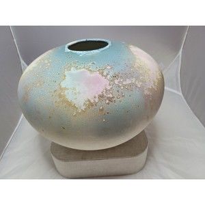 pottery. The multicolored vase features a Raku glaze and a beautiful pattern